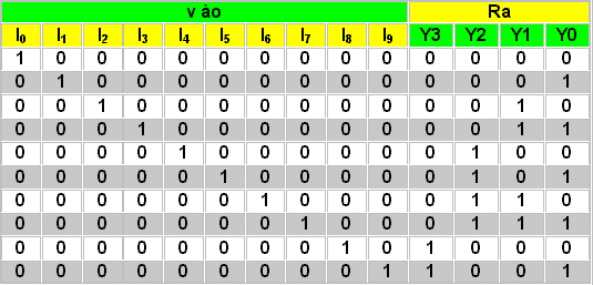 Và đây là bảng sự thật của mạch mã hoá 10 đường sang 4 đường