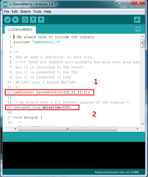 LedControl lc = LedControl(12,11,10,1);